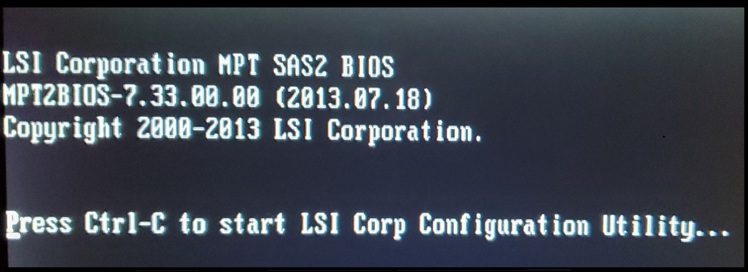 LSI Hardware BIOSEvery time the device is powered on, the first thing displayed on the screen is a notice for accessing the LSI Configuration Utility; an occasion which would be very rarely necessary. If you use a Keyboard to do so, youll find that the SAS Controller card installed is an SAS9211-4i (which supports the 4 SAS/SATA connectors installed in the device):